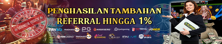 * Bonus REFERRAL SLOT dan LIVE CASINO 0,1% dari TO (turn over) permainan SLOT dan live casino